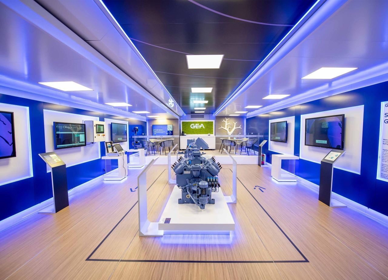 GEA was on the lookout for a unique way to shine a special spotlight on its new product offering for the high-tech refrigeration industry. A culturally neutral design was required that would support the products and solutions being featured. The choice of materials and finishes had to meet the highest standards in order to guarantee worry-free tours.